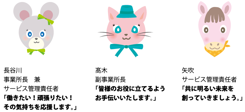 障がい者就労継続支援の事業所として、障がい者就労継続支援A型 ふわり、障がい者就労継続支援多機能型 きらり、障がい者就労継続支援A型 ひらりを運営しております。